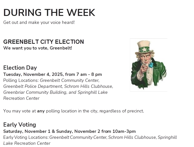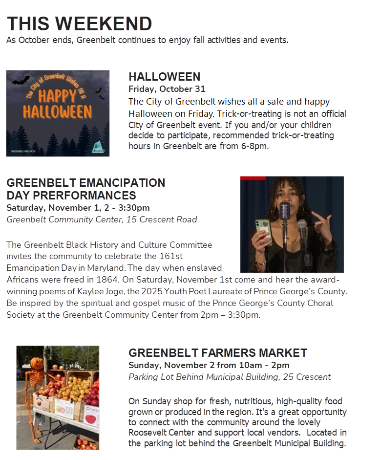 31 Oct 2025 In Announcements, Greater Community By Greenbelt 2 City of Greenbelt Upcoming Events October 31 – November 7